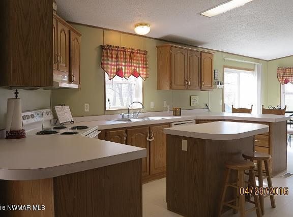 This is a very nice large Homark home with open concept. 1,620 Sq Ft with 3 good sized bedrooms, 2 baths, central air, vaulted ceilings, kitchen island, deck right off the breakfast nook, sky lights in both bathrooms, firepit and more. All the kitchen appliances stay as well as the washer/dryer and deep freeze. This is a lot of home for the price and sits on it's own lot!!!