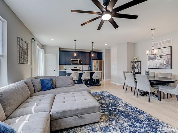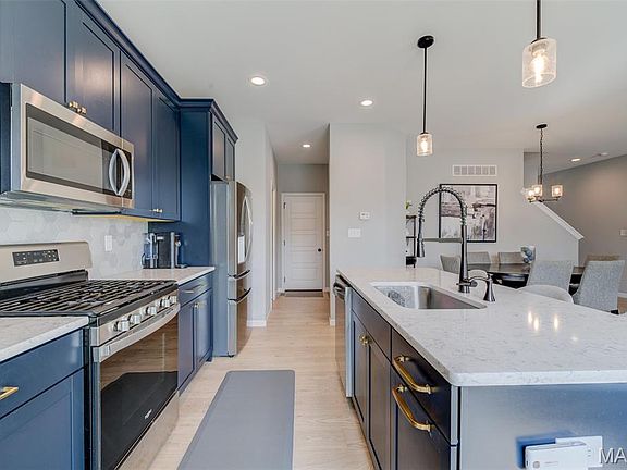 Nearly new MOVE IN READY Fischer & Frichtel built beauty is tucked away on a quiet cul-de-sac in a prime St. Peters location—and it’s packed with the features today’s buyers are looking for. From the moment you pull up, the curb appeal shines with professional landscaping, a fenced yard, and a charming front facade. Inside, the 2-story open concept layout offers a seamless blend of style and functionality. The gourmet kitchen is a showstopper with an oversized island, quartz countertops, 42" cabinets, stainless steel appliances, gas stove, tile backsplash, and a separate pantry—perfect for entertaining or everyday life.