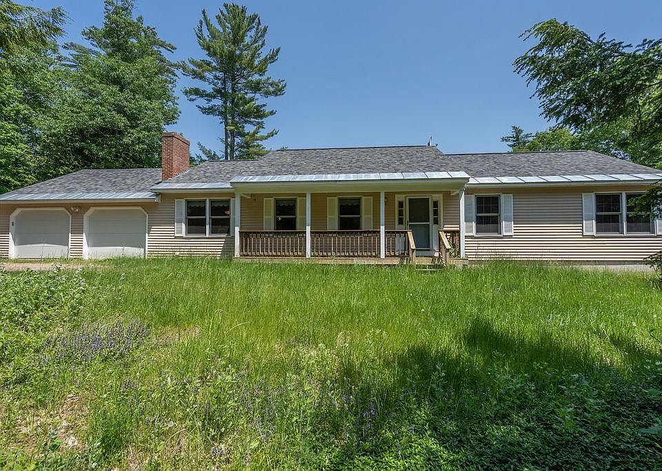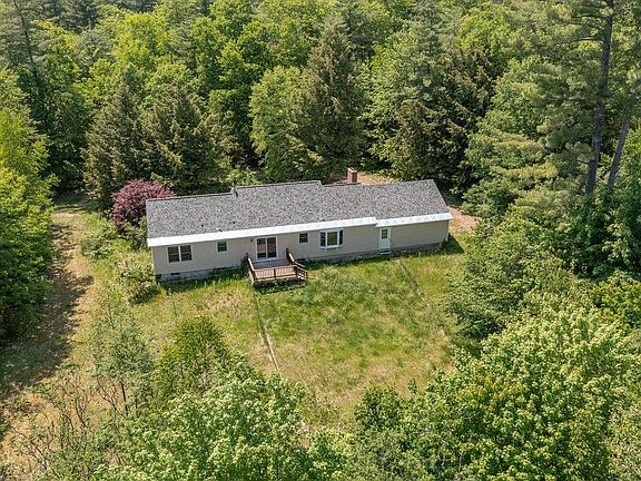 If you are looking for a large piece of land and privacy, look no further. Well-maintained and completely private ranch in desirable Sanbornton offers single level living with charming brick fireplace, hardwood floors and fully applianced eat in kitchen, with pantry and laundry mudroom close by. There are sliders out to a sunny back deck. There is a primary bedroom with bath plus 2 other spacious bedrooms. Property also offers attached two car garage and large private driveway. All on an amazing 20 + acres, in current use for a reduced tax bill. There is a huge unfinished basement, great for storage or a workshop or even more finished space. This property is close to Steel Hill, shopping in Tilton or Laconia, skiing, golf, restaurants, attractions and the highway, for comuters.