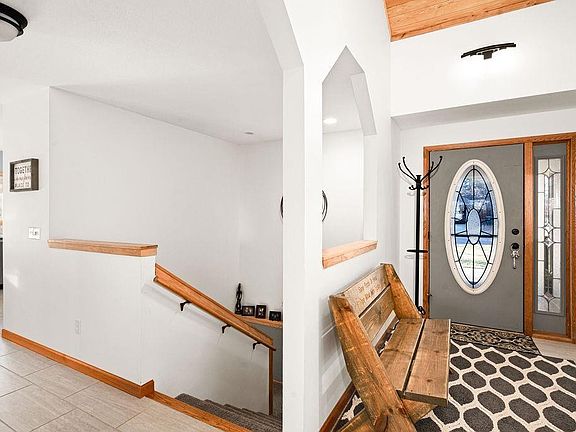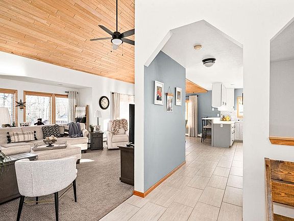 Wonderful & spacious on a dead end street & 198'x134' lot. Open floor plan with cathedral ceilings & skylight. Updated kitchen with solid surface counters, tiled back splash & tile flooring. Natural gas in floor heat. Mini split in LR & master BR. Great back yard with 2 decks & firepit area. Brand new carpet in the lower level. Walkout basement. Electric: $142/mo average Water/Sewer: $48/mo average for 2-person household, $82/mo average for 4-person household Gas: MN Energy