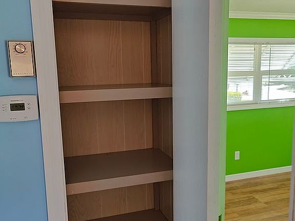Highly desirable Tidevue Estates! No monthly lot rent! Lakeview living! Beautiful 2 bedroom, bath and a ½ home. Pride of ownership shows in this updated home. Laminate flooring throughout. Updated windows, drywall instead of paneling throughout the home. Turnkey furnished! Just bring your toothbrush, it’s all there! The kitchen has white cabinetry, newer countertops, stainless steel appliances and a great island with seating open to the living area. Spacious living room and dining room large enough for a crowd. Retreat to the spacious master suite and relax with a large walk-in closet and convenient 1/2 bath. Queen sized Murphy bed in the spare bedroom is an awesome feature and the closet is equipped for more great storage. The Florida room is going to become your favorite part of the home and oh what a view! The shed is the perfect place for a workshop or storage area. Complete with washer and dryer. Plenty of room to create your outdoor oasis under the carport or soak in the Florida sun and work on your tan on the open patio in the back of the home. Nothing to do here, just start enjoying the Florida lifestyle. You're going to love living in Tidevue Estates a LAND OWNED 55+ community. Lots of amenities including pool, shuffleboard, bocce, billiards, plenty of activities in this community! Low HOA of only $516 yearly. No monthly lot rent!