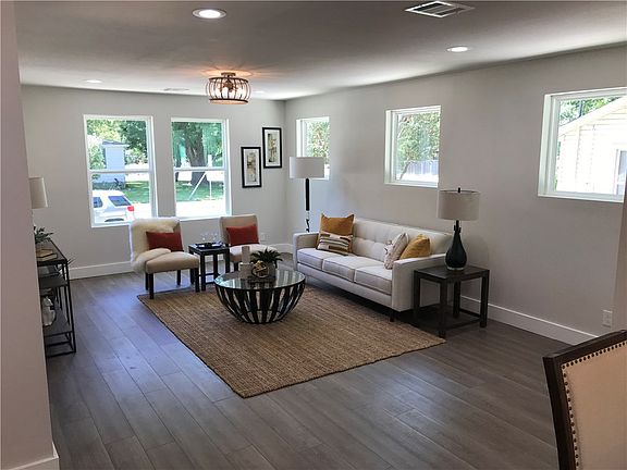 Updated in 2020 with all new plumbing, electric wiring, insulation, sheetrock, 16 seer a/c system including ducts, tank less water heater and insulated tilt out windows. Deco features include waterproof faux wood laminate floors, stylish tile surround in kitchen and baths, deco tile in hall bath, quartz counters, self close cabinets, stainless steel appliances with gas cooking and double oven plus all new lighting and plumbing fixtures. New front and back porch decks for outdoor entertaining. Detached garage with opener plus carport. Large fenced back yard with gorgeous in ground heated swimming pool and spa!!