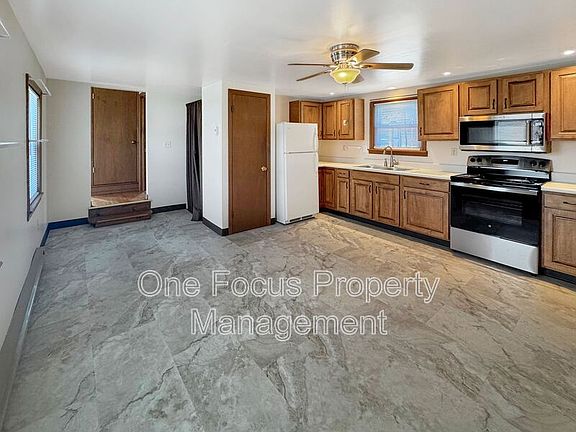 This second-floor apartment is so cozy, bright, and spacious that you will be chomping at the bit to call it home! From your small private porch that faces the rear and side of the home, you are greeted by a large eat-in kitchen. There is a large area of cabinets and counters that are complemented by full-sized appliances, and a moderately sized pantry. There is also ample space for a dining table and chair set. The bathroom is next and boasts a large linen closet and a full tub and shower. Into the living room, you are greeted by a bright, open space that has outlets on every wall, and the room to comfortably set up your main living space. The last space in the home is the bedroom that also doubles as your laundry room. That may seem like things would be small, but you have more than enough room for additional furniture, a king bed, and still have the space to dedicate to your laundry needs! Lawn Care and Snow removal are included in the cost of the rent. Residents are responsible for electricity, water, sewer, and trash removal services. NO PETS. No Section 8. Heat Source: Electric Baseboard Appliances Included: Fridge, Stove, Microwave, Washer, Dryer. Laundry: Included Parking: Driveway Minimum Application requirements: Minimum of a 600 credit score AND 2.5 times the rent in verifiable income after debt services Bank account verification. All leases signed with One Focus Property Management include the following fees that are not included in the cost of the listed rent: A one-time $50 move-in fee. $15/month Resident benefit program fee. $12.95/month master renters insurance policy. Do not submit any application for this home with or pay any fees or deposits to any party other than One Focus Property Management.
