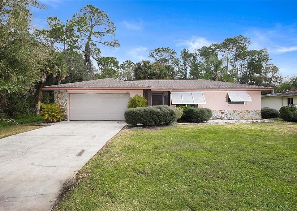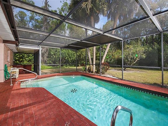Where can you find a POOL home that is priced below $200,000 and in move-in condition? Right here is where!! Exceptional value on this 2 bedroom, 2 bath CONCRETE BLOCK home with an attached 2 car garage! Split bedroom layout - large master suite with HUGE walk-in closet. Updated kitchen with beadboard style cabinets, tiled backsplash, solid surface countertops and pass through window to the lanai. Inside laundry room with cabinets for extra storage. BEAUTIFUL, HEATED sparkling IN-GROUND POOL with a spacious lanai and brick pavers! BONUS ROOM (not included in square footage) located off of the lanai - just perfect for a fitness room or overflow for guests. Large, private backyard with wooded view. Some updates include a newer roof 2010, hot water heater 2017, garage door 2009, new carpet in the living room and master bedroom. NOT located in a flood zone or an HOA!! Situated in a quiet neighborhood, yet so close to all of the conveniences that Port Charlotte has to offer!