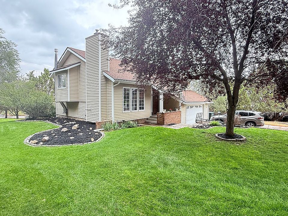 Split level with vaulted ceiling to provide an open and spacious look and feel between the living room, kitchen and dining. Three bedrooms and two full bathrooms on the upper level. A family room, one bedroom and a full bath on the lower level. The rear includes a large uncovered deck with bench/lights for the lower level (great for entertaining) and an uncovered deck for the upper level with a covered patio below. The upper deck provides a view of the trees and mountains. Gas fireplace and gas stove. Full automatic sprinkler system and two storage sheds. Located on a 1/3 acre lot in the wooded area of Johnny Creek. Two of the bathrooms have been updated. The basement is perfect for an office or a theater room.