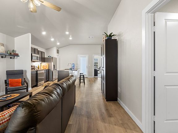 Pickle Ball, Anyone?? Full-size court in your own backyard + a putting green! Plus a beautifully designed 3-bedroom, 2-bath, 2 car garage home offering an inviting floorplan, perfect for both entertaining and quiet evenings. This better than new open-concept layout includes a spacious living area, modern island kitchen, and great-sized bedrooms. Ideally located just minutes from an elem school and 349 access. Seq Primary with nice walk-in closet and bath. Hard surface flooring in all but bedrooms. Super clean, gently lived in and move in ready!! PICKLE BALL FUN and a great home all in ONE!!