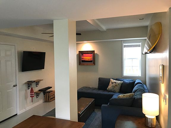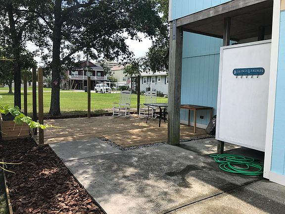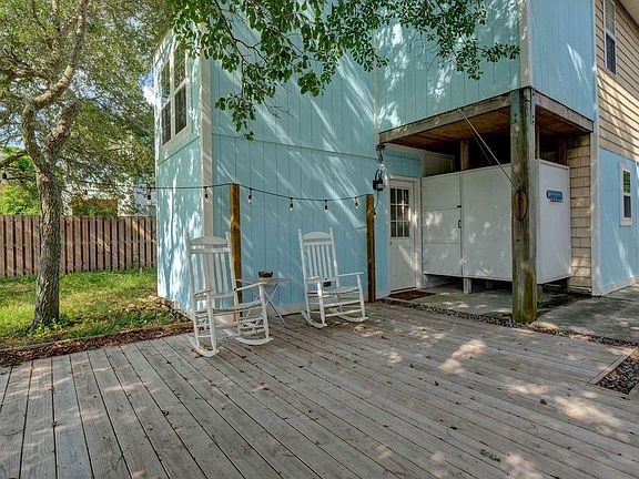 Welcome to Carolina Beach! This fully furnished lower unit, is a 2 bedroom/one-bath (1000 sq ft) first floor of a duplex. It features a comfortable living room, a large deck and a new fully equipped kitchen with granite counter tops and stainless steel appliances. The master bedroom has a queen size bed, armoire and two closets. The 2nd bedroom has a pyramid bunk bed (1 full and 1 twin sized bed). One full bath with tub & granite vanity. New full size, front loading washer and dryer. Great backyard with new large deck under the shade of live oaks. Private outdoor shower. From the house you are an easy 4 block walk to the beach and Tiki Bar. It's an easy walk or bike ride to the Boardwalk, restaurants and bars. Available Oct. 1, 2019- May 15, 2020. The unit is Fully Furnished. Everything you need. Cable, internet, WIFI, dishes, pots, pans, etc are available. ALL utilities are included in the rent. No smoking is permitted. Hypoallergenic pets considered. First floor of Duplex. The home is fully furnished. All utilities, cable & internet included in rent.