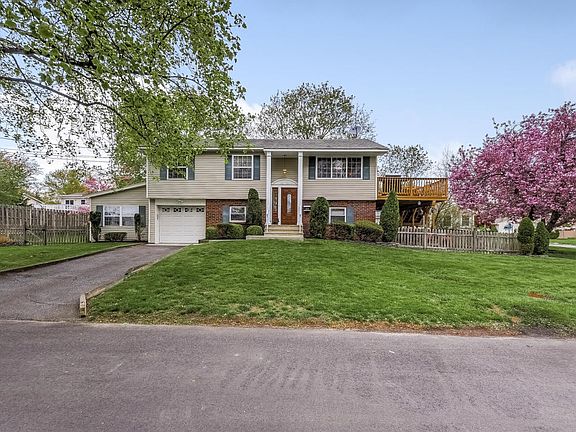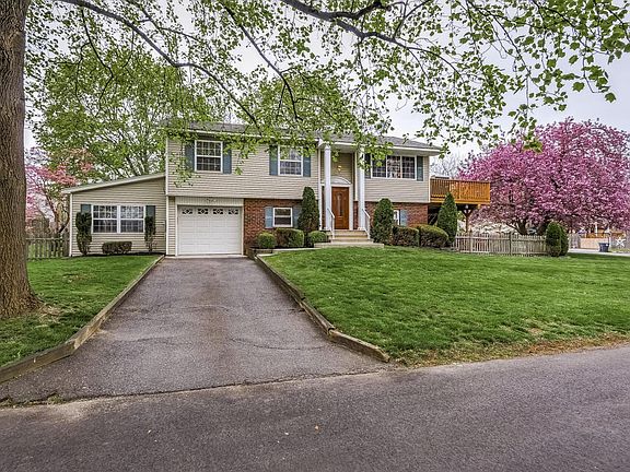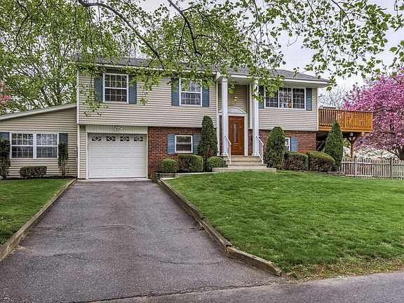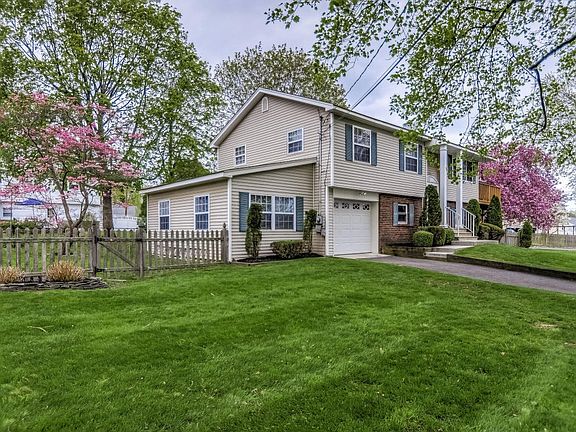 A home made for entertaining. Barbecue on the expansive second floor deck, swing on the shaded patio, catch a game at the custom bar or a movie in front of the marble trimmed gas fireplace. One of a kind corner lot overlooking Orchard Park and ideally located directly across the street from the bike trail with access to beach, shopping, theater, library, athletic fields, historic village, tennis, basketball, playground, and dog park. This three bedroom, two full bath bi-level features an expanded master bedroom with sitting area, fireplace, walk-in closet, and private outdoor balcony. Newer large bedroom addition is perfect for teen, live-in parent, playroom for little ones or exercise room. The office can be re-purposed as a fourth bedroom. The kitchen features stainless steel appliances.