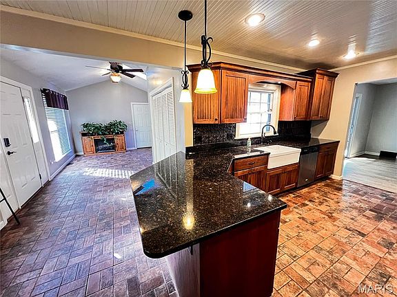 This beautiful multi-level home features vaulted ceilings, skylights, and an open kitchen/dining area with real wood cabinets, granite countertops, farmhouse sink, and modern appliances. Main-level laundry adds convenience, and three full bathrooms—including a master suite with double sinks—provide comfort for the whole family. Upstairs offers a sitting area, reading nook, additional bedrooms, and ample attic storage. The finished basement includes a second kitchen, bedroom, full bath, living space, and separate entrance—ideal for guests or in-law quarters. Enjoy outdoor living with a covered patio, fenced yard, decorative trees, and both an oversized two-car attached garage with a rustic bar and a detached garage with carport. Situated on 2.5 lots in a quiet neighborhood near schools, shopping, and restaurants, this home blends charm, functionality, and plenty of space for family and entertaining.