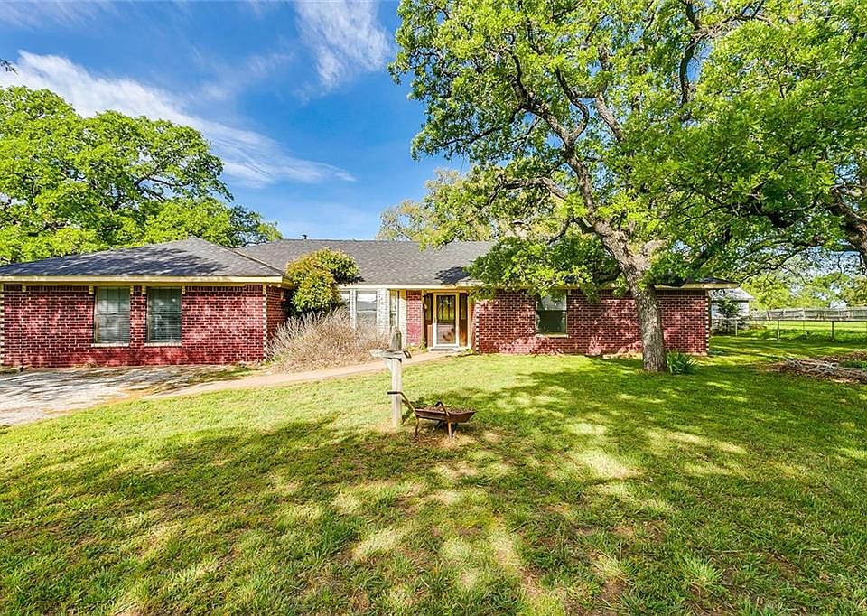 Opportunity Knocks! Best Deal! Diamond in the Rough! With some TLC this property would be amazing! Enjoy Peaceful Country Living in this One Story Brick 3 bedroom home situated on a hill surrounded by pasture land with Newer Sparkling Inground Pool & Spa on 1 Acre with tons of mature trees. Good floorplan with breakfast nook & brick fireplace in living room with Dining Room plus Covered back Patio & Large Storage building with Deck. Natural wildlife all around with beautiful Expansive Views. Ideal for Horses, Dogs, chickens, cattle etc....NO HOA & Lower Property Taxes a Huge Bonus! Approx 15 Minutes North of Eagle Mountain Lake & 42 Minutes Northwest of Downtown Ft. Worth. Price reflects updates needed.