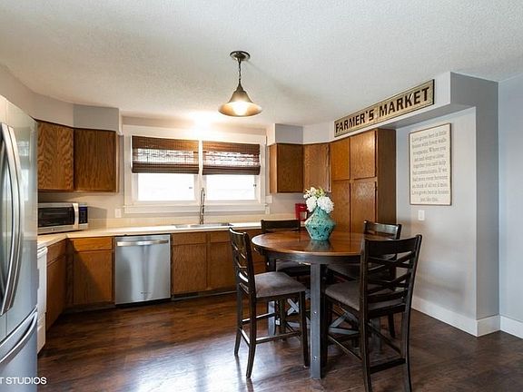 Don't miss out on this charming 2 bedroom, 1 bath, 1 ½ story home loaded w/ updates! Located on one of the prettiest streets, this home has 1,068 SF on main floor, plus stairs to unfinished attic which would easily convert to 3rd bedroom, office or playroom. Updates include roof, vinyl siding, vinyl windows, brand new water heater, new laminate flooring, trim & paint throughout. Complete ¾ bath remodel, including glass shower doors, wood plank wall & barn door to bath. Spacious kitchen featuring new sink faucet, dishwasher, refrigerator! 1st floor laundry. Convenient mud room w/ custom white wainscoting. Large living room has wood burning fireplace w/ custom mantle & wood plank accent wall. 2 good sized bedrooms & all closets are cedar lined/custom organizers! Unfinished lower level. Oversized 1 car garage w/ lots of storage, plus bonus attached shed behind garage. Large flat yard w/ firepit area. Just a few blocks to the district admin building & elementary!