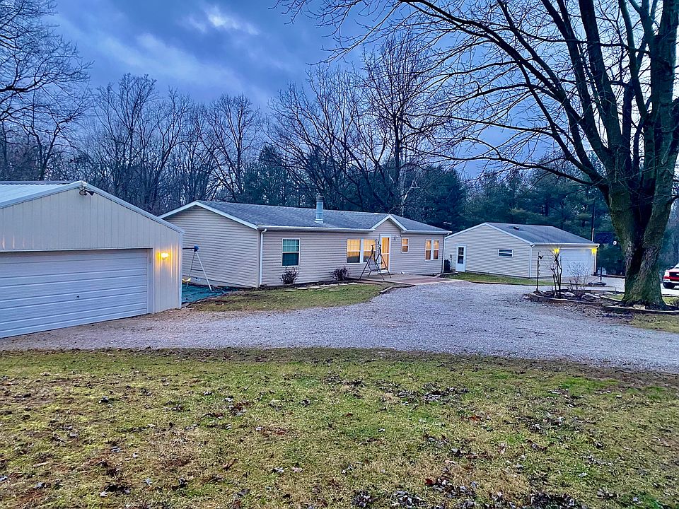 Who is ready for 1.56acre manufactured home with immediate access to 40 and minutes from I70! This spacious 1344sq ft, 3bd, 2ba home has plenty of room for the whole family and a great space for entertaining outdoors! (2)-two car garages with plenty of storage space, set up that Mancave/She Shed you have always wanted or start your next outdoor project! New vinyl plank flooring in Kitchen, laundry room in 2023 and a beautiful quartz countertop island to prepare all your favorite meals. Walkout deck off the master bedroom and nice walk-in closet with large master bathroom! Large outdoor garden area established for spring planting and private access to two stocked ponds for fishing! A short trip across US 40 to South Putnam schools, this property has a lot to offer for the new home buyer!