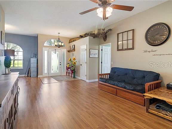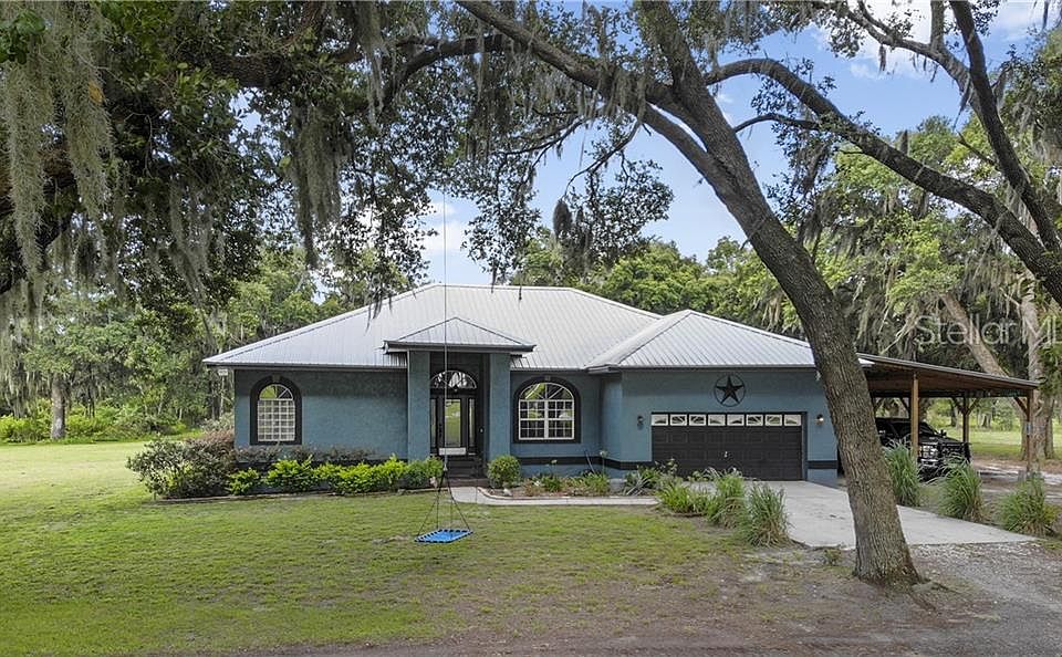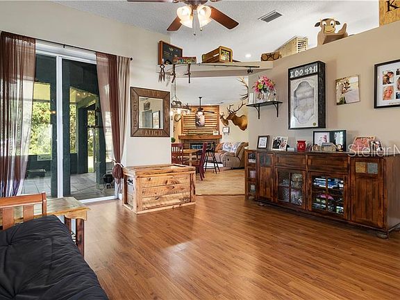 Country living at its very best on 3.07 acres in Itchepackesassa???s Country Class Estates. Beautifully updated on the inside with so much charm! Wonderful open concept with great flow. The formal living room and dining room, kitchen, dinette area and family room are perfect for entertaining with 2 sets of sliding doors that overlook the huge 30???x24??? screened porch. Some of the special features of this home include: Hall bath with marvelous barn look style d??cor, ceramic tile and laminate flooring through-out, wood burning fireplace with barnwood surround, raised panel kitchen doors, inside laundry with storage. Large master bedroom and updated glamour master bath with sliding doors and views of the screened lanai and private backyard is perfect for relaxing after a long day. You have a 2 car attached garage plus an attached 28???x24??? carport / pole barn. In addition, you have a 44???x40??? barn/building, large enough to fit a motorhome or all of your other vehicles. Metal roof installed in 2012 with 40 ??? 60 year roof life, A/C is approximately 5 years old. Zoned for horses and cattle yet close enough for easy access to I-4 East and West and the Polk Parkway, Publix Corporate and much more. House and land are situated on one parcel Welcome home!