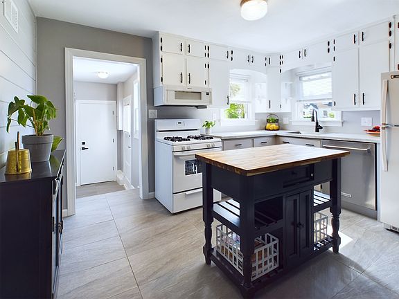Charming property with a gorgeous yard sitting back from the road on just shy of an Acre with 2BD, 1 BA, 862sf, and more! You'll love the inviting covered front porch with plenty of room for sitting and a side view of the large beautiful garden! The bright Kitchen includes gas range, sleek microwave, dishwasher, and refrigerator that stays, custom center island, plenty of storage and the beautiful flooring is 15x30 inch porcelain tile! The kitchen also features a wood shiplap wall and an accent wall that is painted with chalkboard paint to draw on as you wish. The Living Room has recently refinished oak hardwood floors with a focal fireplace and mantle, a unique large corner window offering natural light galore and beauty! The hardwood floor extends through the hallway and primary Bedroom. It's also under the brand new carpet in the 2nd BD! New fixtures in the Bathroom! Washer and Dryer stay in large Laundry Room with sink, mechanicals and deep freezer that also stays and opens to the covered back deck with attached Storage Room and exterior door. The back yard has a fire pit and fully fenced area closer to the house with everbearing strawberries planted in 2023 along the fence line with several years of berries expected. The lush yard with tall trees extends all the way to the fence toward 37th St. The side garden is impressive. This property has been meticulously maintained inside and out. Freshly painted this Spring and new exterior lighting added. 1 car attached Garage also with storage! Close to shopping, dining and less than five miles to interstate! Diagonal from Polaski Park with pond, walking trail, pickleball, tennis, basketball and more! Don't miss this one!