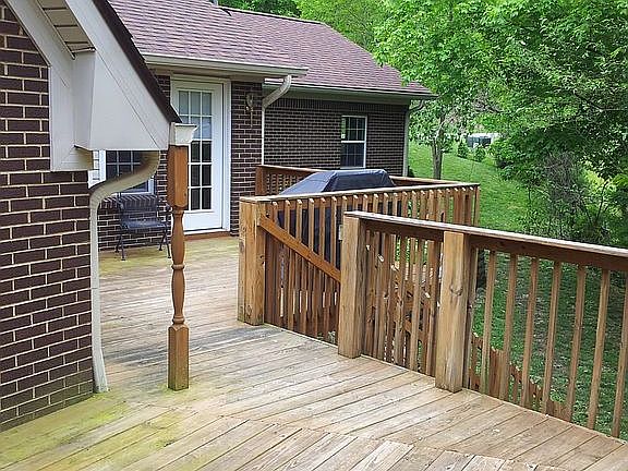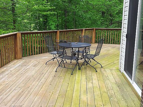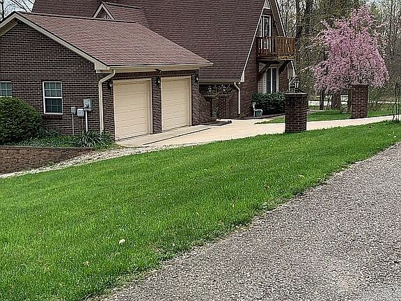 Custom built brick Chalet with 2 car attached garage. Large 800 sq ft deck overlook a semi-private fishing lake. Large Master bedroom with 2 walk-in closets, large window seat and adjoining Master bathroom with seperate shower and tub. Upper level has bedroom with walk out balcony, full bathroom, and sitting room with fireplace. Large accessible crawl space provides lots of storage. Ring cameras around the house for security. Great location!