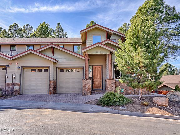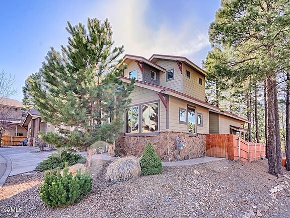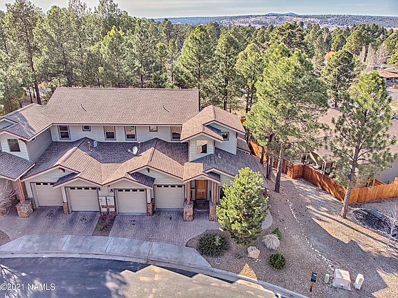 LUXURY MOUNTAIN LIVING! This 4 bedroom / 3 bathroom is nestled in the Ponderosa Pines and has captivating views of the San Francisco Peaks. There are many upgrades throughout the home, stainless steel appliances, granite counter tops, gas top stove, natural Malapais rock gas fireplace, vaulted ceilings downstairs, tons of natural light up stairs with a reading nook, and it's an end unit neighboring the common area. Close to NAU, CCC, downtown, and Sawmill.