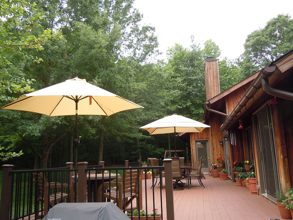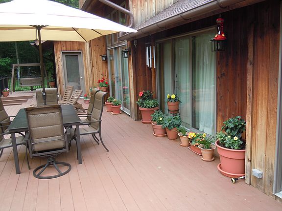 Solid Quality Custom Built Contemporary Rancher on a beautiful 2 acre lot. Picturesque setting with black top circular driveway, mature trees, beautifully landscaped, expansive decking in the back of the home with a private setting to relax for peace and tranquility. Approx. 2915 sq.ft. of living space with full basement and potential expansion for more living space, if needed. 2 wood burning fireplaces in living room and kitchen areas. Oversize 2 car attached garage w/overhead storage. Master Bedroom w/2 large walk in closets in the dressing room, sitting area w/separate tub and shower.Updates in the past 5 yrs: New roof & guttering,2 hot water tanks (40 & 50 gal),well water holding tank,granite counter tops, Bosch oven,dishwasher,cook top,garage door opener,sump pump, Two (2 ton & 3 ton) heat pumps (separately zone)glass in 3 skylights, ADT alarm system. Parquet,tile and carpet flooring. The property is very unique and has been extremely well maintained.