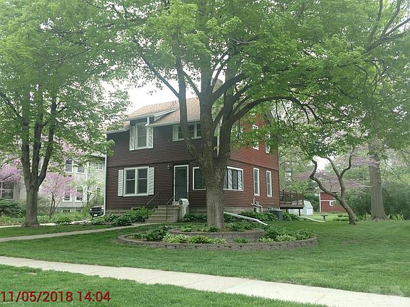 PRICE REDUCED!!! Location, Location. Well maintained 2 Story home close to the Grinnell College. Enclosed front porch leads you to the large dining area with fireplace. Nice sized living room. Kitchen is cozy and has access to the 1/2 bath and sunroom. Sunroom opens to the large deck with great views of the back yard. Second floor has 3 bedrooms and sleeping porch and full bath. Basement is walkout and plenty of storage with small workshop area. Large yard has plenty of room for a garden. 1 car detached garage and storage shed with alley access.