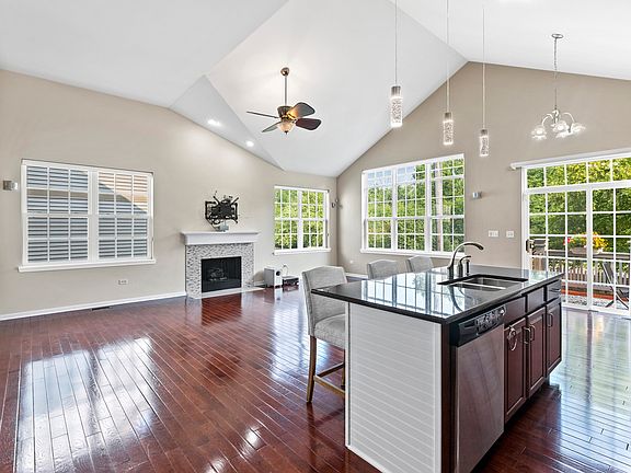 Beautifully updated 4BR, 3BA home with over 3000sf of finished living space in great location! Minutes to the Rt 59 Metra train station, I88 expwy, Chicago Premium Outlet Mall and more shopping/dining! Open concept layout with volume ceilings, separate Dining Rm, Living Rm w/refinished gas Fireplace, and surround system. Hardwood floors throughout the main level. Huge Kitchen with 42"cabinets, large island w/granite, all stainless steel appls and pantry! Refinished deck off Kitchen is perfect for entertaining! Spacious primary BR has it's own private deck, renovated bathroom w/ large walk-in shower, new vanity and walk-in closet w/custom California closet shelving. 2nd BR has custom California closet shelving and mounted TV will stay! Freshly painted, custom window treatments and new light fixtures. Full, Finished Basement provides large Media Room, 2 bedrooms, and custom walk in shower with fogless mirror! Entire basement has New ceramic tile flooring that looks like wood! Sump pump w/back up and cement floor crawl space w/lighting for all your extra storage needs. Newer roof, exterior landscape lighting, security system, and sprinkler system. Awesome pool & clubhouse to enjoy along with the landscaping and snow removal taken care of! Nothing to do but move in and relax! Stonegate West is not an age restricted community. See list of all improvements under Add'l Info *** SELLER IS OFFERING A $5000 CLOSING COST CREDIT TO BUYER IF UNDER CONTRACT BY 11/15 ***