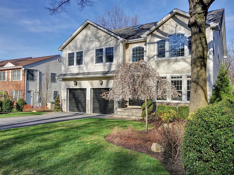 This contemporary gem was a new construction in 2013 and is perfectly decorated and move-in ready! On one of the most beautiful streets in Teaneck with unique elevation that offers unbelievable sun and views of the mountains to the west. 5" oak floors and oversized windows throughout. Living room with ethanol fireplace, very large dining room with washing station. Kitchen features stainless, Jennair pro 6-burner stove, 2 sinks, 2 dishwashers, granite counters, huge walk-in pantry. Family room adjacent to kitchen with sliding doors to deck. 5 large beds and 3 full baths on second floor. 3rd floor has two beds and a full bath on either side of a large den. High end window coverings, 20kw generator, 2 car attached garage, custom closets, finished walk-out basement with bed and full bath, custom garage interior, timed lights, central vac. Furniture available for sale.