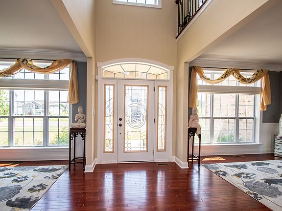 Gorgeous... Stunning... Beautiful... You must see this home for yourself. Bright sunshine greets you at the front doors - shining from the floor to ceiling windows in the dining and living rooms. Breath-taking entry with custom crystal chandelier. Hardwood floors throughout the entire first floor. Traditional office space has been modified by the owners into an open piano room. Two story great room with more windows than you can count. Adjacent gourmet kitchen with granite counters and island opens to the breakfast/sunroom. The master bedroom has a tray ceiling, two HUGE walk in closets, and a spa-like bathroom retreat with soaking tub and shower with glass surround. The fourth bedroom has been open up into a breath-taking loft space and is being used as an office. Custom wrought iron balusters line the second floor railings over looking the entry way and great room. The full finished walk up basement gives you an additional 1200+ square feet of living space. A portion of this space could be finished off to provide a private lower floor bedroom or il-law space(full bath is already there). An additional 1/2 bath would still be available to your party goers. Custom stamped driveway displays the house number of your new home... Why wait for new construction when you can have this 2 year old beauty today! Custom lighting in foyer, family room, dining room, and piano room stay with the home. Seller offering 10,000 closing help with acceptable offer.