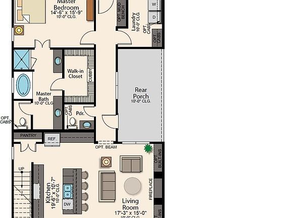 - Breakfast Bar, Ceiling 9'+, Ceiling Varied Heights, Crown Molding
