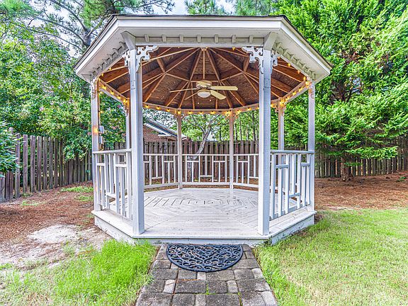.Public Remarks: This charming 3/3 all brick ranch split bedroom plan in desirable Pinehurst is nestled into a quiet neighborhood w/easy access. Foyer enters into a large vaulted ceiling w/open floor plan, newly refinished hardwood floors. The two bedroom wing can be closed off. Dining room is open to the living room and kitchen. Living room with built-ins and french doors open to a fully heat and air Carolina room. Fenced backyard w/beautiful gazebo and fire pit. Kitchen with white cabinets, granite countertops, and tiled backsplash. Eat-in space/nook, with plenty of natural light coming through transomed Anderson windows. Extra large master with large walk-in closet. Master bathroom has jacuzzi tub, Separate walk-in tile shower and two separated tile vanities with private toilet areaProperty has lg asphalt driveway with a two car side attached garage leading into laundry room with easy kitchen access. Kitchen has custom tile work including an island with second sink double oven, Granite countertops.