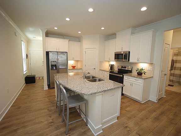 Immaculate ALMOST NEW RANCH home located on a cul-de-sac in popular 55+ community. Take a quick 5 minute walk on the Walking TRAIL to the clubhouse for a swim, pickleball, tennis etc. Upgrades include: LOT upgrade, recessed lighting, under counter lighting, screened porch and extended patio, LVP flooring, bay window in primary bedroom, and gas grill hookup. Large Living Area open to the kitchen, screened porch and beautiful view of PRIVATE outside living area. FRESHLY PAINTED Primary bedroom/bath suite has double sinks, large walk-in shower with upgraded shower door, granite, tile, and very large closet. Gourmet kitchen with granite, large island, stainless appliances, cabinets with pull-out drawers, huge pantry and under counter lights. Nice 2nd Bedroom with recently painted hall bath. VERY LARGE side yard and common area make this home seem perfect for pets and grandkids. Close to RDU and shopping.