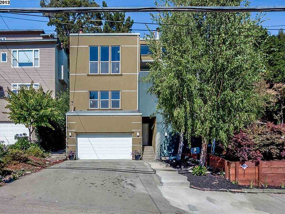 Exciting Bauhaus vibe, with privacy and hilltop vistas, built in 1991. Soaring 2-story living room with a wall of windows. Formal dining room, family room, open kitchen, sitting room, bedroom & bath on main level. Lovely outdoor living. Less than a mile to Montclair Village; quick Route 13 access.