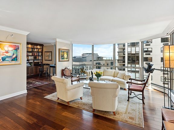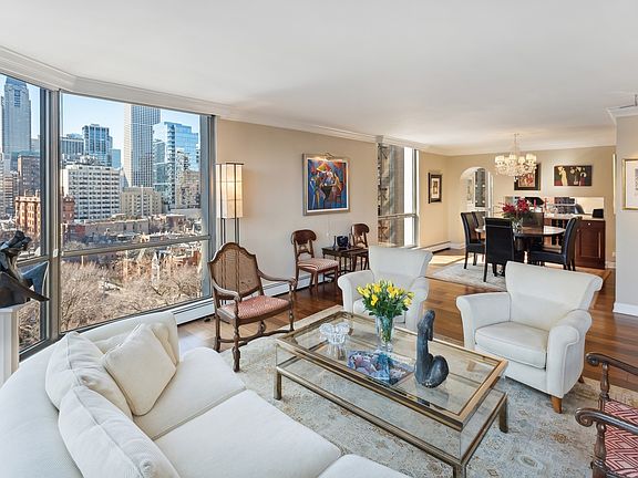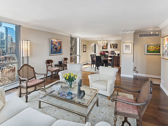 Get ready to fall in love. A beautiful half floor residence like this seldom comes to the market. This Gold Coast home offers a thoughtfully and well-designed wrap around floorplan that lives like a house without the stairs. With two primary bedroom suites, a large eat-in kitchen, full-size laundry room, four full baths, and plenty of areas to entertain you will enjoy both privacy and luxury. From the floor to ceiling windows, the home is filled with light and views of the lake and skyline. A handsome office features a craftsman-built desk and library; perfect to work from home. Entertaining is easy with two areas to entertain guests: one in a more relaxed setting and the other more formal. Throughout the home are stunning exotic Brazilian chestnut ebony wood plank floors, soffit lighting, crown moldings, custom window treatments, Toto and top of the line Grohe plumbing fixtures, and an abundance of closets. The updated open eat-in kitchen features clean lines with crisp white modern wood cabinetry and under cabinet lighting, thick granite countertops and backsplash, deep storage drawers, plenty of prep space, under-counter Miele oven, microwave, food steamer, and induction cook-top, and large capacity built-in fridge. Truly a cook's dream. Living is easy at Ritchie Tower. The fully staffed building offers the best pool and landscaped deck in the Gold Coast, fitness room, heated garage parking, 24-hour door staff, and top-notch service from a long time staff. There are three grocery stores within walking distance, great restaurants like Gibson's Steakhouse, Le Colonial, Lux Bar to name a few, CVS and Walgreens, Starbucks, Sweet Greens, Farmers Markets, and much more. Enjoy bike paths, parks, the beaches and shopping all within less than a mile of the home. Easy access to Lake Shore Drive, Interstate 94/90, Eisenhower Expressway, trains and buses. Schools include Ogden International, Latin School, Walter Payton College Prep, and Francis Parker High School.