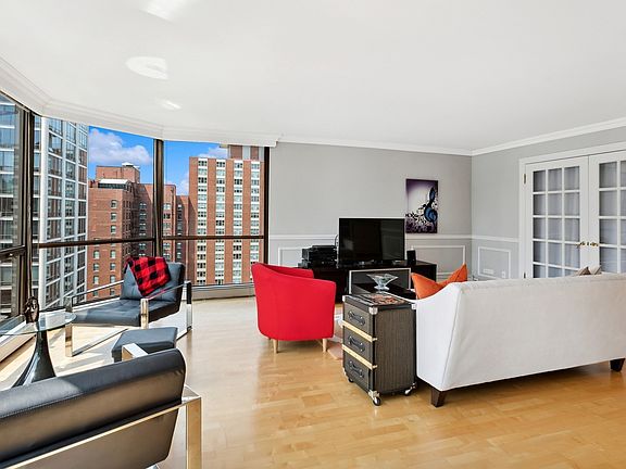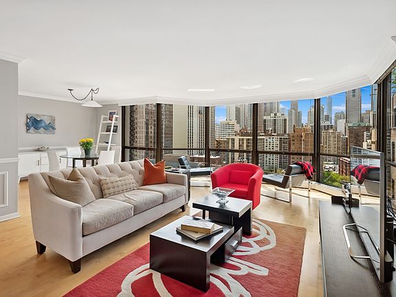 Beautiful high floor condo with floor to ceiling windows facing a never-get-tired of architectural landscape and a view of the lake. Sleek maple floors, soft painted rooms with interesting moldings, and a handsome kitchen that opens into the dining area, add to the flair of this well laid out floor-plan. Both bedrooms are generous in size and get great light from west facing windows. The primary bedroom has an ensuite bathroom, with dual vanity and sinks, step-in shower and a large walk-in closet. The 2nd bedroom has a wall of closets. This Gold Coast building is known for great amenities, including one of the prettiest pools and landscaped sundeck in the neighborhood. Other amenities fitness room, 24-hour doorman, onsite manager, and an attached garage. All this in an excellent location to walk to the beach, local restaurants like Gibson's Steakhouse, Le Colonial, Hugo's, Lou Malnati's Pizza , CVS, Walgreens, Starbuck's, Butch McGuires, and much more. We are pet friendly up to 25 pounds.