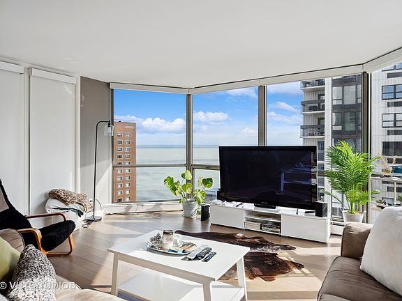 Gold Coast Renovated 3 bedroom 2 bath home on the perfect floor level with great views of the city and the lake. Top-of-the-line materials were used in every corner from the wide plank hardwood flooring, to the elegant custom cabinetry throughout and the expensive natural stone surfaces. Every room faces the lake, The kitchen layout was opened and expanded with a breakfast bar facing the living room and an extension of built-in cabinetry from the kitchen into the dining room creating an elegant buffet. The unique 3rd bedroom offers panels of glass with remote-controlled blinds offering views and privacy. Conveniently located walk to everything location on a quiet residential street next to historic homes in a full-amenity building with landscaped sun deck and outdoor pool, BBQ grilling area, fitness room, and 24/7 door staff. Attached Parking Garage. Currently rented to great tenants but will move out before closing.