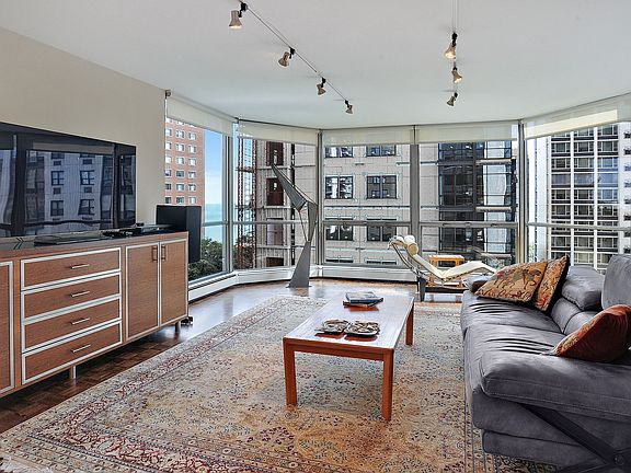 Fabulous 1550 sq. ft Gold Coast condo with views of city landscapes, water, and iconic skyscrapers. A large open living area features stunning night views of the city. The 3rd bedroom was opened up as an office space but could easily be converted back. Kitchen features include rich sawn-wood cabinets, Bosch w/d, sharp granite floors, counter-tops and back-splash. It opens to the living room and affords views and light from the floor to ceiling windows plus a breakfast bar. Rich marble baths, one featuring a walk-in shower and the other, a soaking tub. The 2nd bedroom has great closet space and easily accommodates a queen bed. The master is very spacious with a walk-in closet and en-suite bath. Here you can gaze out the window at the lake and relax. This was just painted and is ready to go! Amenities: gorgeous outdoor pool w/deck, fitness room, receiving room & 24-hr doorman. This is a walker's paradise in a service-oriented building.