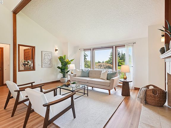 Contemporary and sun soaked on a private Cedar Mill cul de sac, this home shows off vaulted ceilings and exposed wood beams that wow from the start. Lush landscaping wraps the property in vibrant color and sets the stage for easy entertaining and everyday retreat.The living room centers on a classic wood burning fireplace and flows to a chef’s kitchen with stainless appliances, quartz countertops and abundant storage. The large main level primary suite is a true escape with a spa style bath featuring dual vanities, a walk in shower and a freestanding tub. Endless upgrades shine throughout. Outside, enjoy a covered TREX deck, tranquil water feature and level yard that invites sunny gatherings or morning coffee among the trees.Energy efficient solar panels transfer with no equipment fees. Minutes to Nike, Intel, Beaverton and downtown Portland. This home delivers modern comfort and lush surroundings in one perfect package.