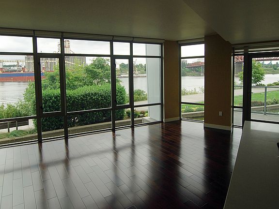 Just listed! Front row view of the waterfront! Huge picture windows give you almost a 180-degree view of the river. No elevators needed in this main level condo w/ TWo parking spots. Almost 1500 sq. ft w/ two Master Suites. Tons of storage and great entertaining space, both indoor & on two outdoor patios. Secured building w/ 24hr concierge, gym/sauna and conference rooms. Just steps from all of the great things Portland has to offer. New interior paint. 24-hour on-site security. Just gorgeous!