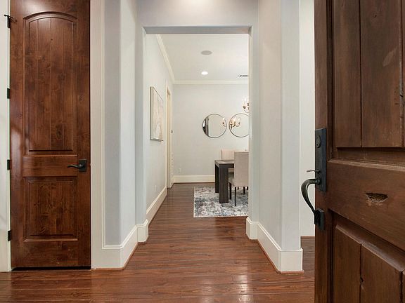 This charming home in The Heights offers high-quality craftsmanship, spacious living, and an excellent location. Enjoy a maintenance-free turf yard with a mosquito misting system, just steps away from The Heights Hike and Bike Path. Inside, hardwood floors, high ceilings, and an open floor plan create a welcoming atmosphere. The primary bedroom boasts a large bathroom and walk-in closet with custom wood built-ins. Upstairs, two additional bedrooms share a Jack and Jill bathroom, each with their own custom closets. Laundry convenience is also a plus, with the laundry room located upstairs. Welcome to your new home!
