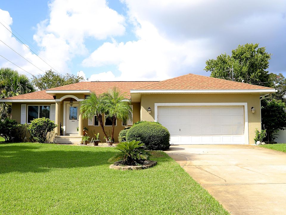 Beautifully manicured corner property in Daytona Beach. Concrete block 3 bedroom, 2 bath pool home just waiting for your family! Solid oak kitchen cabinets hi-lite the kitchen and dining area. Separate laundry area near the master. Roof only 2 years old (30 yr architectural shingles). Windows replaced last year and A/C is only 3 years old. Nothing left for you to do but enjoy your solar heated screened pool & patio area! If you get tired of that there is a 5 person hot tub too! Two storage sheds for all your extras. 50 amp outlet to plug in your RV. The landscaping includes a banana tree, naval orange tree, papaya, Norfolk Island pine and even a Royal Poinciana tree! Easy access to 95, Tanger Outlets and the beach!