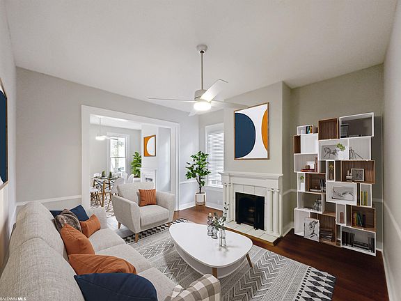 PRICE IMPROVEMENT! PRICED TO SELL! Take a look at this updated Mid-town Mobile home. This remodel gives you 3 fresh new bathrooms and a kitchen with a modern update, but keeps the charm of the original architecture, wood floors downstairs, moldings, trim, and 4 fireplaces that are not currently in use, but left in place for the historical appeal this home has. The kitchen has all new appliances that convey. Imagine enjoying your holidays in this grand home with soaring ceilings. The entire upstairs is carpeted other than the bathrooms which are a beautiful tile. The primary suite and the kitchen pantry have the barn doors in a contemporary black that is a home feature. Outside you will find a grand entry front porch with a 2nd story balcony. On both the left and right side of the home are additional entries with smaller porches. This home could be yours just in time to pick the lemons from the bountiful lemon tree on the property. There is also a storage shed in the back of the property that conveys. The property is privacy fenced on 3 sides with a black metal fence on the front. There is plenty of parking on the long driveway and behind the house as well. Grab you favorite realtor and come see this house for yourself. All information is deemed accurate but not guaranteed. Please verify any information important to you.