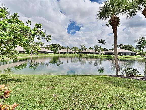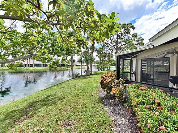 This Imperial Park Place lakefront Villa is located in one of Naples most established, desirable communities, Imperial Golf Estates. This home features 1763 square foot of total living area including open floor plan where the kitchen, dining room, and great room all have wide lake views through the screened lanai plus 2 bedrooms with en suite baths and a half bath. The master bedroom has direct access to the screened lanai and walk in closet. There is also a wet bar, laundry, attached garage, vaulted ceilings, fresh paint and large yard area. The private setting with wide views of the lake and fountain are hard to find at this price point. Imperial Park place offers pool with restrooms and gathering area. Imperial Golf Estates has optional memberships with renovated Clubhouse, two championship golf courses, Driving range and short game area, and Putting green, Recreation and fitness, Resort-style community pool and spa, Tennis courts, Bocce ball court, Pickleball courts, Fitness room, Miles of winding trails for biking and jogging, Clubhouse with fine and casual dining options, Activities like wine tasting, themed parties, and social mixers, Games such as mahjong, bingo, and bridge, Off-site activities like trips to art galleries, museums, and shopping. This perfect North Naples location is close to great beaches including Barefoot Beach, Delonor Wiggins State Park and Vanderbilt Beach plus Mercato, Coconut Point, Waterside Shops, and other dining and entertainment options. No Flood insurance required.