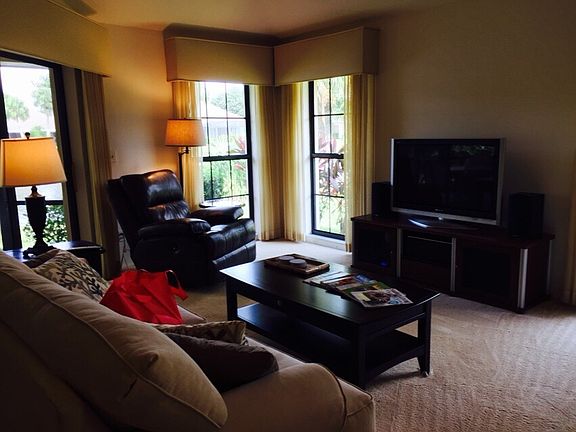 2 bedroom, 21/2 bath attached villa in Park Place Villas, a subdivision of Imperial Golf Estates. This is a fully furnished, well appointed and comfortable rental. Enjoy your morning coffee or evening glass of wine on the lanai viewing the beautiful and tranquil lake and fountain. Comes with basic cable which includes HD and extra channels. There is a 1 car garage as well as an air conditioned storage closet in the garage. The residents of Par Place Villas have voted to build their own community pool instead of using the tennis club's pool. The pool should be completed in the winter. This unit is in walking distance to the location of the community pool. Take this opportunity to rent this great villa before it goes. NO PETS ALLOWED. Annual Rental $1700 per month. Tenant pays utilities. Owner pays for exterior pest control and basic cable. tenant can upgrade the cable package at tenant's expense. NO PETS ALLOWED!!