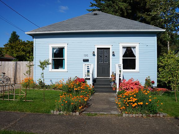 Accepted Offer with Contingencies. Adorable bungalow in SW Albany just a few blocks from West Albany High School. High ceilings, hardwood floors, tall windows. Tray ceiling in living room. Kitchen with dining area, tile counters, backsplash, and flooring, lots of counter and storage space. Spacious bedrooms, huge bath with tile floors, laundry room. Detached garage and fully fenced yard; double gate at end of driveway provides off-street parking for camper or RV. Front yard with fruit trees and blueberry bush, small hen coop in backyard.