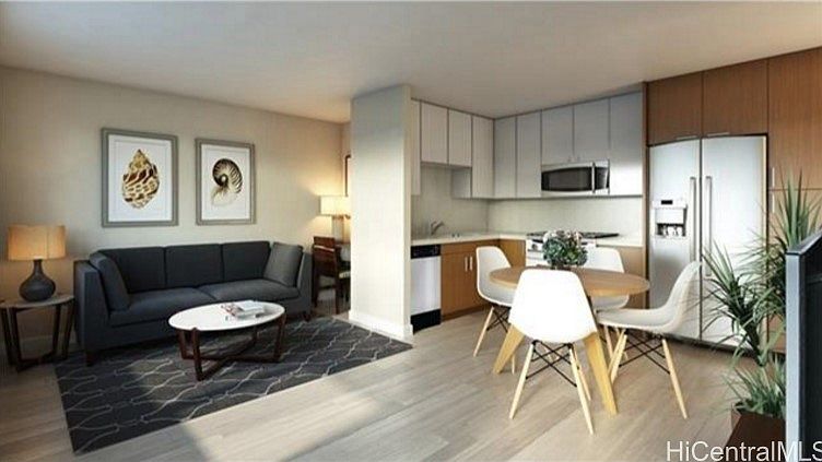 The Residence at Makiki is a modern, secure, and well designed building built in 2016 in the heart of Honolulu. Rarely available, this superior in-town Makiki location conveniently located within steps from Safeway, Kaiser Hospital, H-1 freeway, the post office, schools, restaurants, and public transportation. Just down the street from Ala Moana Shopping Center, Ala Moana Beach Park, and the Ward/Kakaako Entertainment hub as well. This location cannot be beat! This unit boasts beautiful contemporary materials throughout including stainless steel appliances, dishwasher, built-in microwave, A/C, EZ to clean luxury vinyl flooring, crisp white granite countertops, frosted kitchen cabinets, soft close shelving, Grohe European designed faucets, and a full-size stacked Bosch washer/dryer. As a special bonus, this first floor unit boasts a huge 226 sq. ft. (approx.) fenced-in patio, an assigned storage locker, and 1 covered parking stall. The building also has several guest parking stalls and is pet friendly (Buyers to verify). Buyers must complete all due diligence that they may deem material. VA approved. Sold AS-IS.