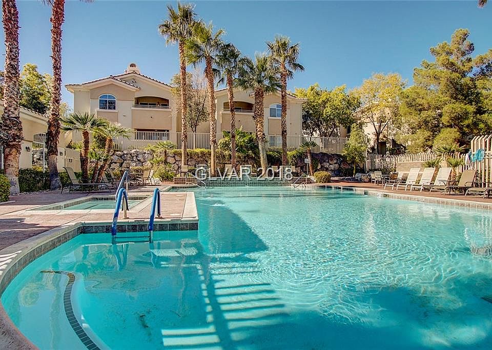 Cozy 2 bdrm/2ba Condo located in the quaint Gated Community of the Red Bluffs at Summerlin Crossing with a single car garage!. Single story floor plan located on bottom level. Spacious living room, large master w/walk-in closet and private bath. Covered patio and neutral two tone paint, Home is move in ready! Community offers a sparkling pool & spa, fully equipped gym and separate bath facilitates with sauna & beautifully maintained grounds.