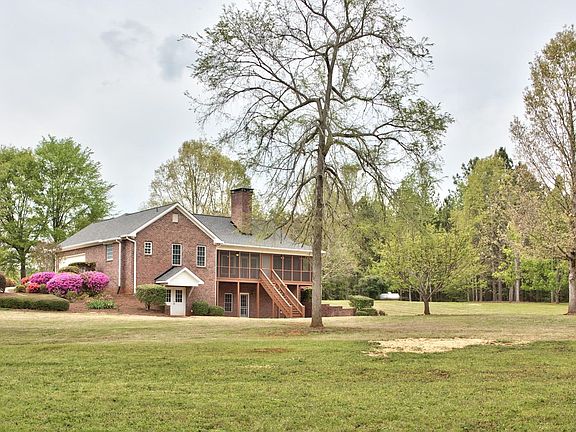Step inside the foyer and soak in the views all the way to your back yard - country living at its best! The open walls, arched doorways, and barrel shiplap ceiling are welcoming features. The new quartz countertop and tiled backsplash make the kitchen delightful - and look at the huge pantry and handy coffee nook. Be the first to enjoy the new deep soaking tub! This brick ranch with full finished basement is centered on nearly 8 private acres, just 5 minutes from Exit 105 on I-20. Quality construction, with new roof, gleaming hardwood floors, slate foyer and laundry room, custom trim, and a great floor plan with formal dining room and split bedroom layout. The spacious owner's suite with trey ceiling overlooks the private backyard. Imagine the hours you'll spend outdoors - rocking chair front porch and screen porch span the length of the home front and back. Downstairs living space includes a 2nd kitchen, living and game rooms, bunk room, large bedroom and full bath - plus a handy workshop area and storage room. With an attached 2 car garage, shed, and carport - there is room for all your toys. Land is a mix of grass and woods with trails, suitable for homesteading. Don't miss the doghouse! No HOA.