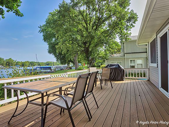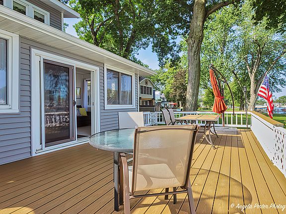 WATER FRONT! Property Has a Letter of Map Amendment (LOMA) dated from May 4, 2009. No Flood Insurance Needed Here! WELCOME TO THIS BEAUTIFUL HOME ON THE FOX RIVER. THIS 2 BEDS / 1.1 BATHS CAPE COD HOUSE WITH 48' OF FRONTAGE! This Home has it all w/ Spacious Living Room and Decorative Fireplace and Hardwood Floors, Large Dining Room w/ Hardwood Floors, Remodeled Eat-In Kitchen in 2019 w / High-End Stainless Steel Appliances, Colonist White Cabinets and Custom Backsplash, 2nd Floor Private Primary Bedroom / Newly Refinished Floors and Stairs to First Floor in 2024. Remodeled Primary Bathroom in 2017, Washer and Dryer on 2nd Floor, Excellent Water Views from the 4 Season Sunroom With New Carpet 2023. Opened Up Wall From House To Sunroom adding 4 New Windows For Even More Beautiful View and Brighter Light, in 2023. Sunroom is Perfect for Enjoying a Morning Coffee, Lunch or Dinner With Family or Friends. New Foundation Footings / Pier Work and Additional Support Beams Professionally Added in 2023. Upgraded Deck with Maintenance Free Boards in 2018, New Garage and Garage Door was Built in 2020, 3 Additional Parking Spots in front of the House, New windows in 2019, House was resided and installed New Roof in 2020, 150 AMP Service installed in 2004, Pier was expanded in 2023 w/ Maintenance Free Plastic Grid, Repaired Seawall in 2018, Lift Station With New Canopy 2023. This could be a "Turnkey" House with the House Furniture, Available to Buy Separately, This is a Must See it will not last long!