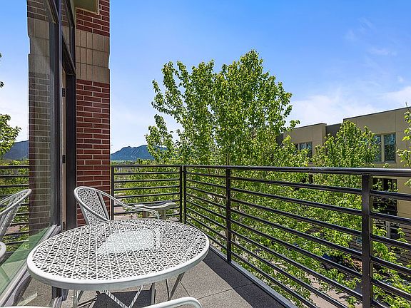 Bright, two-story end unit offering the perfect blend of urban and active lifestyles. This Village at Uptown Broadway condo is nestled at the base of the foothills in North Boulder. Spacious and airy floor plan with designer finishes throughout. Truly low-maintenance living at its finest. Sunlight pours through 10' floor-to-ceiling windows in the large living room, while the west facing deck boasts mountain views. Large trees offer bedrooms privacy, while not blocking sunlight. Both bedrooms are complete with ensuite bathrooms and walk-in closets. Master bathroom has spacious shower with dual heads. The 2-car garage is located at ground level beneath condo and provides ample storage for bikes and skis. Steps from Amante Coffee, restaurants and retail. Easy access to numerous nearby hiking trails, short bike ride to Pearl St. You won't want to miss this gorgeous home.