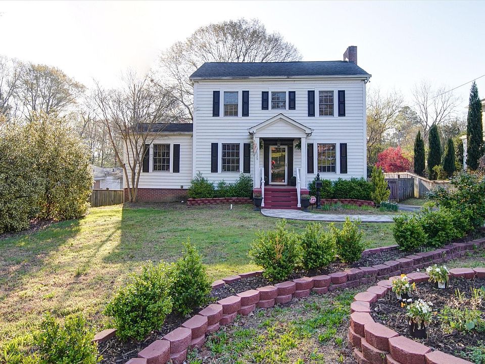 Look no further than this beautiful colonial in Brookwood Historic District. Gourmet kitchen features include: gas range, breakfast bar island, glass front cabinetry, under cabinet lighting & a charming window seat! Handsome hardwood floors. Spacious living room with extravagant moldings & fireplace mantel. Laundry room with cabinetry & pantry closet. Recently updated bathrooms. Walk-out basement finished as recreation room has large storage closet & utility room access. A terrific getaway space! Spa like bathroom with whirlpool tub and separate shower. Screened in porch overlooks large fenced backyard with storage building. Additional basement area with outside entry ideal for storing yard accessories or potential workshop. Near downtown amenities and FUSE District. Seller represents Rheem AC and Furnace installed 4/2019 and 30 year architectural shingles installed 2009. Additional information about Brookwood Historic District available at City of Gastonia Planning Dept.