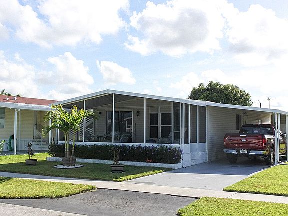This is a beautiful, comfortable, well maintained 1980 manufactured home. This home offers 2 bedrooms and 2 baths, with 1,056 sq ft of central air conditioning space. Enclosed patio, storage shed and enclosed fence. This home is located in ALL AGES, and pet friendly, Rexmere community in the heart of South Florida, less than 15 minutes from great shopping, restaurants, museums, movie theaters and the world class beaches.