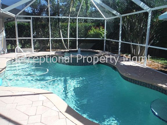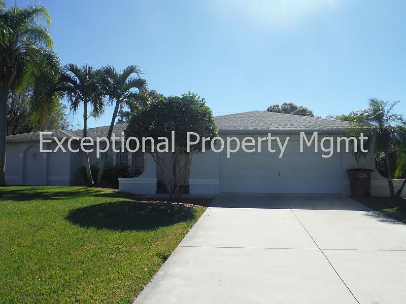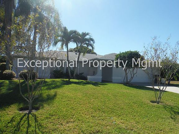 Unbelievable opportunity awaits you with this meticulously maintained SW Cape home. Located on a quiet street across from golf course homes, this beautiful home offers 3 beds (all w/large walk-in closets), 2 baths (pool bath), over 1,900 sf of living space as well as a terrific paver lanai with large under truss area and a gorgeous free form pool with spill over spa, accessible through 3 sets of French doors and a pocket slider. You'll find the backyard to be completely private with an additional paver patio, shed and ample room for your grill of choice. Inside you'll find a fabulous floor plan that features a great sized family room, living room, formal dining room, breakfast nook, split bedrooms and a centralized kitchen that offers easy access to all living areas. The home has gone through many updates including the kitchen cabinets, counters as well as the stainless steel appliances, which have been added in the past few years. Other major items that have been replaced are the roof, A/C system and the water heater. This home offers character rarely found in homes today and is sure to please any renter! Pool and lawn service included! Small pet possible with approval. Available October!