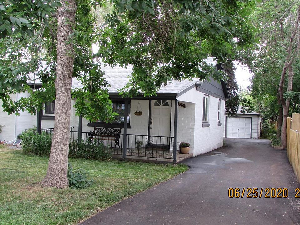 Great 2BR/1BA house in Lakewood's "40 West Art District". Close to shopping, bus, Wadsworth light rail station, 6th Ave & I-70. It has an updated kitchen w/granite counters, Kitchen Aid French door frig/lower freezer, double drawer d/w,Frigidaire gas range & wall mounted TV. Samsung washer & dryer are included. Floors consist of wood, carpet, tile and lino tile. There are 2 ceiling fans and security cameras. The large multipurpose room doubles as laundry, storage, craft/hobby area. An evaporator unit to keep you cool as well as a covered front porch and a lovely back patio. The back yard is lush with mature trees, gardens, perennials, grape arbor, apple & peach trees along with a fire ring and horseshoe pit. The small pond in the front is solar powered and hugs the Japanese maple tree. The asphalt driveway was re-poured within the last month. There is a single car garage packed with boxes and while is not currently accessible, will be made available with signed contract. There is a small metal utility shed as well. This lovely cozy home is a great starter or income property due to it's location near many amenities and transportation. Agent is related to Seller.